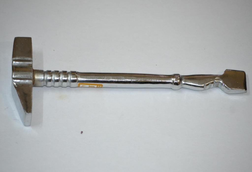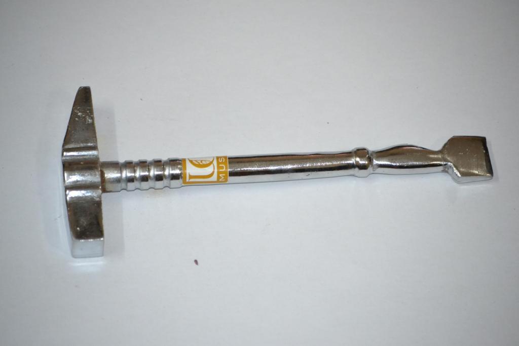 The hammer has a flat head which can be used to push down the gattas and a pointed end with helps to pull up the gattas or to hold the vadi or gajras when tuning is underway.